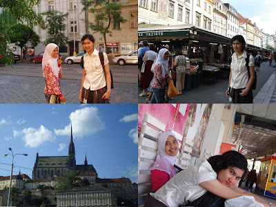 Sebaik tibanya di Prague, persepsi pertama kami ialah ‘Alamak, macam Rusia!’. Jahat betul mulut kami :p Terus kami ada rasa sedikit kurang senang kerana bandar tempat kami turun dari bas adalah tipikal seperti bandar kecil di Rusia. Bahasanya juga hampir sama cuma tidak menggunakan alfabet Rusia yang pelik-pelik itu. Kami terus menuju ke hotel. Ya Rabbi. Selesanya hotel kami walaupun harganya sangat murah. Sebaik sampai ke bilik, perkara pertama yang kami buat ialah mandi. Yahuu. Dan pada malamnya kami bertiga tidur mati kerana kepenatan. Kaki dan badan memang sangat lenguh. Bangun Subuh dan kemudian sambung tidur. Jam 6.30 pagi baru bangun untuk bersiap memulakan pengembaraan hari ini. Kami berada di Prague selama 2 hari. Pada hari pertama, kami menjelajah ke seluruh bandar Prague. Pada mulanya kami menaiki mtero dan tram menuju ke istananya yang terletak di atas bukit. Kawasannya sangat luas! Kami turun naik bukit dengan berjalan kaki. Penat sangat. Tapi kawasannya sangatlah segar, bersih dan cantik. Dan apa yang membezakan warga Prague dengan orang Rusia ialah keramahan mereka. Kami berkali-kali, tanpa meminta, telah dibantu oleh seorang pakcik orang tempatan dan menceritakan pelbagai sejarah republik tersebut kepada kami dan mencadangkan kami ke beberapa buah taman yang didakwanya adalah ‘Taman Romantik’. Hehe. Tapi kami tidak pergi pun. Setelah menyeberangi Charles Bridge, kami berjalan dari Stary Mesta (Old Town) tanpa arah yang spesifik dan akhirnya sampai ke Novy Mesta (New Town). Jika mengikut peta, jaraknya adalah sangat jauh dan kami hanya berjalan kaki merentas dua tempat ini!